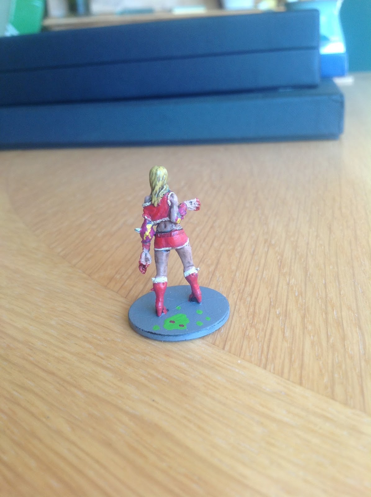 Anyway I thought to myself that one of the female Toxic Walker models might be just be what is needed. The aim was to paint her up in a 'sexy santa' outfit. Great fun. I added a little white edging to the red and it did the trick. I moved away from the green skin tones that I had been using which would have been inappropriate for this theme.